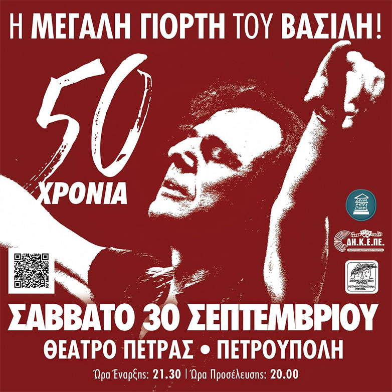 Η μεγάλη γιορτή για τα 50 χρόνια του Βασίλη κάνει την τελευταία της στάση το Σάββατο 30 Σεπτεμβρίου στο Θέατρο Πέτρας στην Πετρούπολη.