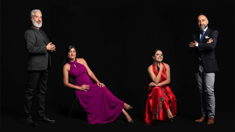 Μαζί τους στο πιάνο, ο ενορχηστρωτής και Υπεύθυνος της Μουσικής Βιβλιοθήκης και του Ιστορικού Αρχείου της Εθνικής Λυρικής Σκηνής, Γιάννης Μπελώνης, στενός συνεργάτης του Μίκη Θεοδωράκη για περισσότερο από μια δεκαετία.