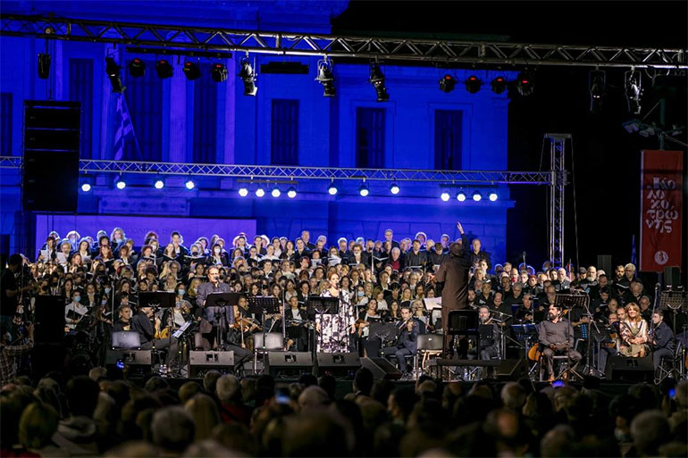 »400 χορωδοί από δέκα πόλεις της Πελοποννήσου και η Συμφωνική Ορχήστρα και Μαντολινάτα Ελλάδα ενώνουν τις φωνές τους στην ιστορική Τριπολιτσά, σε μία παράσταση – ύμνο στην Ελευθερία και την Ανεξαρτησία.»