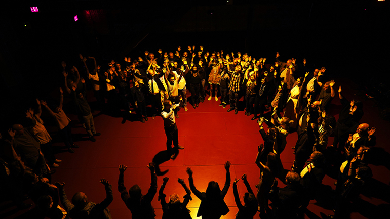«Αυτό το τραγούδι γράφτηκε για να το τραγουδάμε όλοι μαζί» είπε η θρυλική Αμερικανίδα τραγουδοποιός και ποιήτρια όταν ανέβηκε στη σκηνή που είχε στηθεί στο φουαγιέ του θεάτρου, ενώ τα μέλη των Choir! Choir! Choir!, Nobu Adilman και Daveed Goldman – αυτής της ιδιότυπης χορωδίας που γιορτάζει τη μουσική αμφισβητώντας τα όρια που διαχωρίζουν μια πρόβα από μια παράσταση, τους θεατές από τους καλλιτέχνες-, προέτρεψε το κοινό να κατεβάσει τα κινητά του και ν’ απολαύσει τη στιγμή: «Σίγουρα κάποιος θα τραβήξει καλύτερο βίντεο από εσάς, όποτε είναι προτιμότερο ν’ αφήσετε τα κινητά στην άκρη και να ζήσουμε αυτή τη στιγμή όλοι μαζί!».