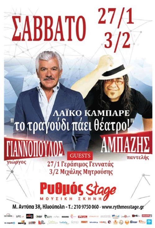 Guest στις 27/1 ο φίλτατος Γεράσιμος Γεννατάς «διηγείται» μελωδικά τα τραγούδια, πλέκοντας με δεξιοτεχνία και υποκριτική μαεστρία, τη μουσική με το θέατρο, το stand up comedy με την επιθεώρηση. Εξάλλου τι άλλο είναι ένα τραγούδι, από έναν τρίλεπτο μονόλογο μετά μουσικής; Μια μικρή ιστορία με κατάλληλη μουσική υπόκρουση, ένα σενάριο τσέπης, με αρχή, μέση και τέλος.