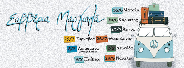 Η Σαββέρια Μαργιολά, μία από τις πιο όμορφες φωνές της νέας γενιάς τραγουδιστριών, ταξιδεύει και αυτό το καλοκαίρι σε όλη την Ελλάδα, παρουσιάζοντας τραγούδια από την προσωπική της δισκογραφία αλλά και επιλογές από τα αγαπημένα της ελληνικά λαϊκά και παραδοσιακά τραγούδια.