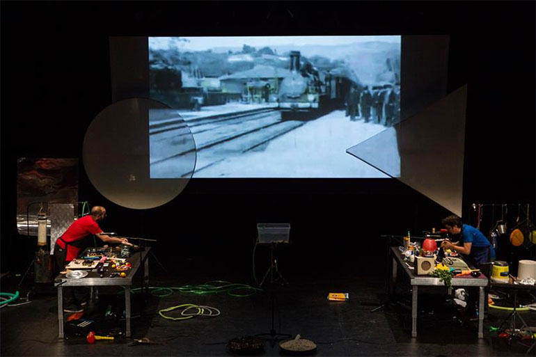 «Χρατς! Μπαμ!» και άλλοι ήχοι από αντικείμενα. Μια διαδραστική, οπτικοακουστική παράσταση, που παρουσιάστηκε στο πλαίσιο του Big Bang Festival 2, μεταφέρει τα παιδιά στον μαγικό κόσμο της foley, της τέχνης που δίνει ήχο στην εικόνα του κινηματογράφου με τη χρήση καθημερινών αντικειμένων. Στο πρωτότυπο αυτό εργαστήριο ήχου, που θυμίζει περισσότερο κουζίνα σπιτιού ή αποθήκη, τα παιδιά, αντί για μουσικά όργανα, συναντούν μια σειρά από καθημερινά αντικείμενα: κατσαρόλες, σφυρίχτρες, συρραπτικά, καραμούζες, φρούτα, λαχανικά, μπαλόνια, μπίλιες, χαρτιά, ελατήρια, κουδούνια ποδηλάτου, λάστιχα ποτίσματος, γραφομηχανές, πατίνια και πολλά πολλά άλλα… Με τα «εργαλεία» αυτά, οι δύο μουσικοί συνοδεύουν ηχητικά ένα καταιγιστικό κολάζ από video animation και παλιές ταινίες, σε γρήγορο ρυθμό και με κωμική διάθεση, κινητοποιώντας τη φαντασία και την παρατηρητικότητα των παιδιών.
