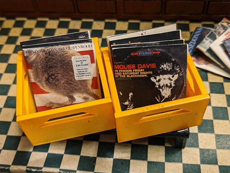 Στην εγκατάσταση «Ricotta Records» -δεν είναι τυχαίο το ότι το «δισκοπωλείο» δανείζεται την επωνυμία του από το ιταλικό τυρί ρικότα- υπάρχουν μικροσκοπικά βινύλια των «μουσικών» Destiny’s Cheese, Bruce Spenwood, Kesella Fitzgerald, Dolly Parsley και Winnimmere Houston. Επιπλέον, μια μικρή συλλογή από μινιατούρες αφισών -όπως των Rats Against the Machine, Modest Mouse, Amy Winemouse και Taylor Swiss-, καθώς και μινιατούρες μουσικών οργάνων.