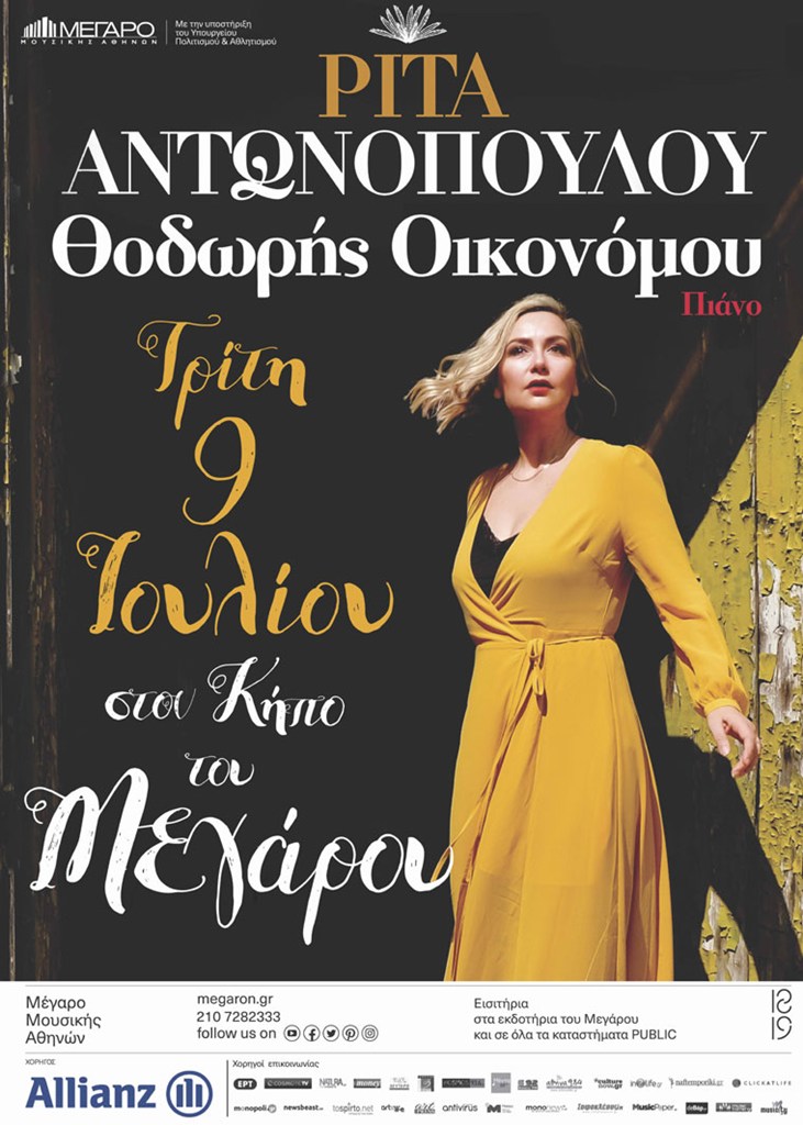 Η Ρίτα Αντωνοπούλου ξεπερνά τον εαυτό της καταθέτοντας ψυχή και ερμηνεία σε μια μουσική περιπλάνηση που σημάδεψε την ίδια αλλά και τον τεράστιο αριθμό θεατών που το παρακολούθησαν και συμμετείχαν σε αυτή. Ο Κήπος του Μεγάρου είναι ο ιδανικός χώρος για να καταλήξει αυτή η περιπλάνηση, την Τρίτη 9 Ιουλίου στις 9 το βράδυ, ύστερα από τόσους σταθμούς σε όλη τη χώρα και την Κύπρο. Στην καρδιά του καλοκαιριού, στην καρδιά της Αθήνας και λίγο πριν την κυκλοφορία της παράστασης σε διπλό βινύλιο, θα ζήσουμε ξανά τη μαγεία της και τη χημεία των δύο καλλιτεχνών που φλέγονται επί σκηνής.