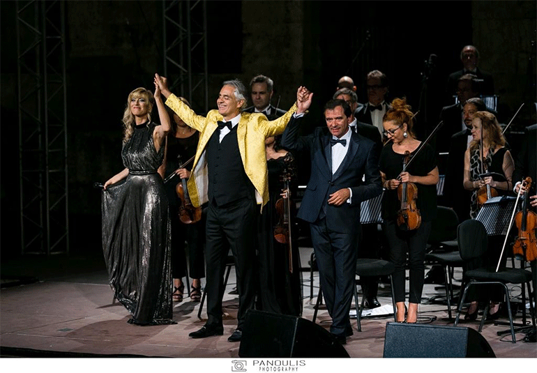 Ο Andrea Bocelli ανέβηκε στη σκηνή του Ωδείου Ηρώδου του Αττικού και με τη συνοδεία της συμφωνικής ορχήστρας της ΕΡΤ, την οποία διεύθυνε ένας από τους σπουδαιότερους σύγχρονους μαέστρουςκαι μόνιμος συνεργάτης του Μποτσέλι, ο περίφημος Marcello Rota, μας χάρισε ένα πρόγραμμα μοναδικής καλλιτεχνικής τελειότητας.
