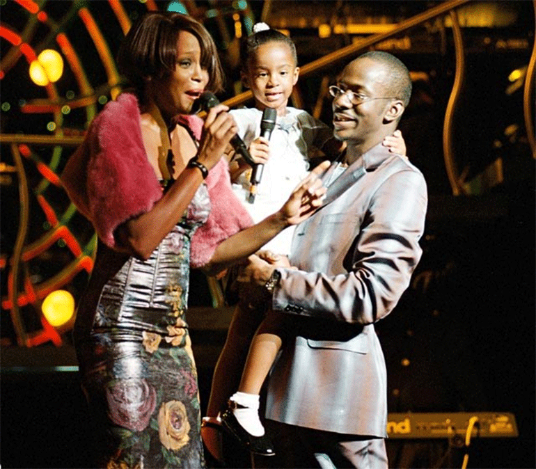 Τον ίδιο χρόνο παντρεύτηκε τον κατά έξι χρόνια νεώτερό της τραγουδιστή Μπόμπι Mπράουν, με τον οποίο απέκτησε μία κόρη, την Μπόμπι Κριστίνα. Η θυελλώδης σχέση τους απασχόλησε συχνά τα πρωτοσέλιδα του κουτσουμπολίστικου Τύπου μέχρι το 2006, οπότε χώρισαν οριστικά και πήραν διαζύγιο ένα χρόνο αργότερα.