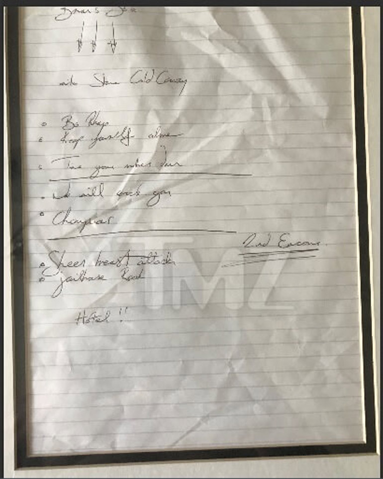 Ενδέχεται να είναι η μοναδική λίστα που έγραψε ο εκλιπών αρχηγός του ροκ συγκροτήματος, σύμφωνα με το TMZ.