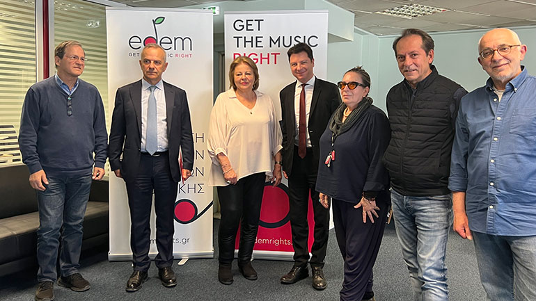 Μια σημαντική συμφωνία για τους πνευματικούς δημιουργούς μουσικών έργων υπογράφηκε μεταξύ της «Ελληνικό Φεστιβάλ Α.Ε.» και της Ένωσης Δικαιούχων Έργων Μουσικής- ΕΔΕΜ. Η συμφωνία αφορά την αδειοδότηση των μουσικών έργων που εκπροσωπεί η ΕΔΕΜ στις πολυάριθμες συναυλίες, θεατρικές παραστάσεις, μουσικοχορευτικές και λοιπές εκδηλώσεις που διοργανώνονται κάθε χρόνο στο πλαίσιο του Φεστιβάλ Αθηνών Επιδαύρου. Στη συνάντηση που πραγματοποιήθηκε στις 17 Μαΐου στα γραφεία της ΕΔΕΜ, παρευρέθηκαν από την Ελληνικό Φεστιβάλ Α.Ε. ο κ. Δημήτρης Πασσάς, Πρόεδρος Δ.Σ. και ο κ. Ιωάννης Καπλάνης, Γενικός Διευθυντής. Από την ΕΔΕΜ παρόντες ήταν ο κ. Χρήστος Νικολόπουλος, Πρόεδρος Δ.Σ., η κα Λίνα Νικολακοπούλου, Αντιπρόεδρος Δ.Σ., ο κ. Παρασκευάς Καρασούλος, Γραμματέας Δ.Σ., ο κ. Αθανάσιος Φουργιώτης, Ταμίας ΔΣ, η κα Λούκα Κατσέλη, Γενική Διευθύντρια, ο κ. Σπύρος Σορβατζιώτης, Νομικός Σύμβουλος και ο κ. Κώστας Μακρής, Διευθυντής Εμπορικής Ανάπτυξης.