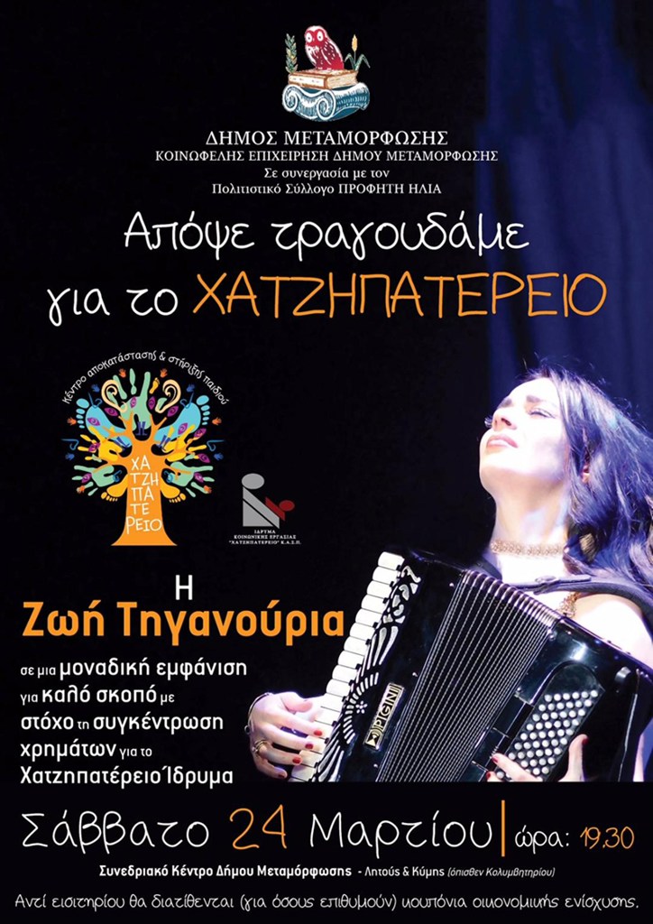συναυλία φιλανθρωπικού χαρακτήρα, με τη Ζωή Τηγανούρια: «Απόψε τραγουδάμε για το Χατζηπατέρειο».