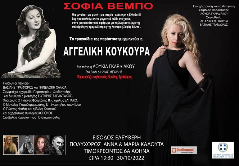 Mια αφιερωματική μουσικό -θεατρική παράσταση για την τραγουδίστρια της «Νίκης» Σοφία Βέμπο