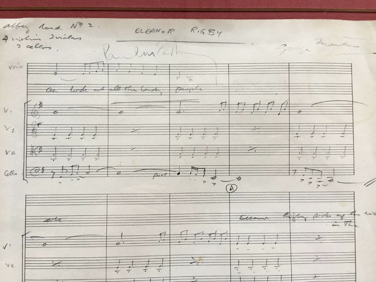 Σε δημοπρασία θα βγει στις 11 Σεπτεμβρίου στο Γουόρινγκτον της Βρετανίας η αυθεντική πρωτότυπη χειρόγραφη παρτιτούρα του διάσημου τραγουδιού των πάλαι ποτέ Σκαθαριών «Eleanor Rigby», όπως ανακοίνωσε σήμερα ο οίκος δημοπρασιών Omega Auctions.
