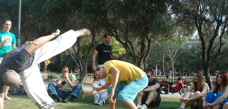 Αν σας αρέσει ο χορός, τότε δεν έχετε παρά να δοκιμάσετε την Capoeira, έναν αφροβραζιλιάνικο χορό που συνδυάζει την ακροβατική, την αρμονία και τις συνεχείς εναλλαγές του σώματος, δίνοντάς σας την ευκαιρία για την απόλυτη σωματική έκφραση. Θα ακολουθήσει επίδειξη με προχωρημένες τεχνικές, ζωντανή μουσική (Bateria) και επίδειξη ακροβατικών.