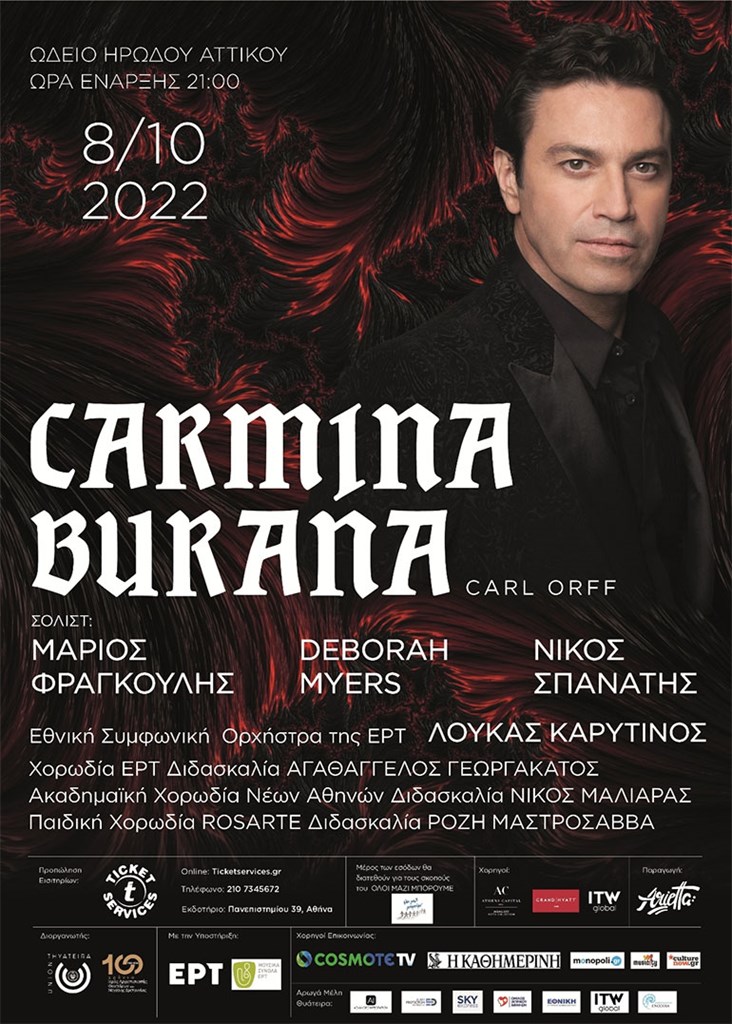 Η συναυλία του Μ. Φραγκούλη Carmina Burana, θα πραγματοποιηθεί στο Ωδείο Ηρώδου Αττικού. Ειδικότερα η πολυμελής ομάδα  με τους τρεις σολίστ μεταξύ των οποίων ο Μάριος Φραγκούλης,  σκοπεύει να αναμετρηθεί στις 8 Οκτωβρίου στο Ηρώδειο με το γνωστότερο χορωδιακό / συμφωνικό έργο του 20ού αιώνα τα εμβληματικά Carmina Burana.