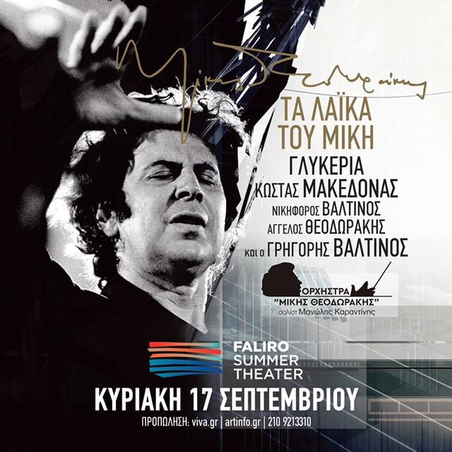 Η Λαϊκή Ορχήστρα «Μίκης Θεοδωράκης» μαζί με την Γλυκερία, τον Κώστα Μακεδόνα, τον Άγγελο Θεοδωράκη, τον Νικηφόρο Βαλτινό και τον Γρηγόρη Βαλτινό θα πραγματοποιήσει μια μοναδική μουσική παράσταση, αξέχαστη σε όλους.