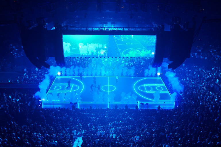 Παίρνοντας έμπνευση από ένα γήπεδο μπάσκετ, είχαν διατάξει το κοινό στις τέσσερις πλευρές του ορθογώνιου παραλληλεπίδου. «Είναι πολύ καλύτερη εμπειρία για τους θαυμαστές. Είναι μια εμπειρία που επιτρέπει στο κοινό να “βυθιστεί” περισσότερο και αυτό δίνει ένα καλύτερο show» είπε ο Περόν, που έχει στο παρελθόν συνεργαστεί με τη Nike και τη Ριάνα και έχει σχεδιάσει το στούντιο Yeezy του Κάνιε Γουέστ.