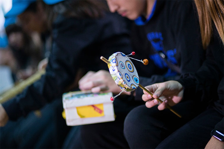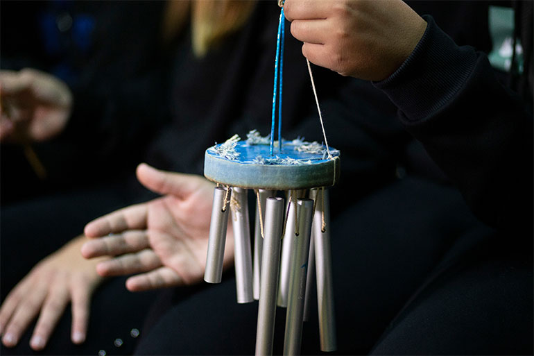 Με την καθοδήγηση της μουσικού Έλενας Χατζηκωνσταντίνου και της καθηγήτριας αγγλικών Μαίρης Δημητρακοπούλου, οι μαθητές και οι μαθήτριες του 3ου Γυμνασίου Ελευθερίου – Κορδελιού χρησιμοποίησαν ανακυκλώσιμα υλικά ώστε να φτιάξουν μια ορχήστρα! Έτσι, σε υαλόφωνα μετατράπηκαν γυάλινα μπουκάλια με συγκεκριμένες ποσότητες νερού χρωματισμένου με γκοφρέ, αλουμινένια κουτάκια έγιναν τύμπανα, όργανα βροχής δημιουργήθηκαν με ένα μακρύ κουτί από αφίσα και πλαστικά μπουκάλια, γεμισμένα με μια χούφτα ρύζι και όστρακα, σε μελωδό μεταμορφώθηκαν σωλήνες αλουμινίου πιασμένες με σκοινί σε ένα ξύλο. Μεταλλικά καπάκια που δέθηκαν μεταξύ τους έφτιαξαν ένα σείστρο, ένα κουτί παπουτσιών με περασμένα λάστιχα έγινε κιθάρα και πολλά κουτάκια που περιείχαν φιλμ, έγιναν μια περίτεχνη μαράκα.