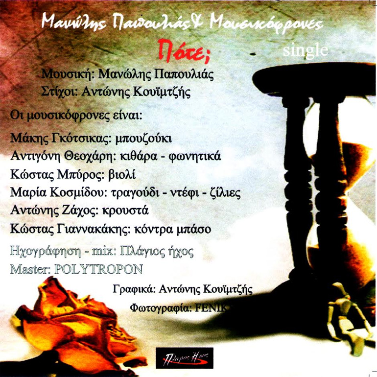 Το Digital single «Πότε» σε μουσική του Μανώλη Παπούλια και στίχους του Αντώνη Κουϊμτζή αποτελεί τον προπομπό του επερχόμενου άλμπουμ.