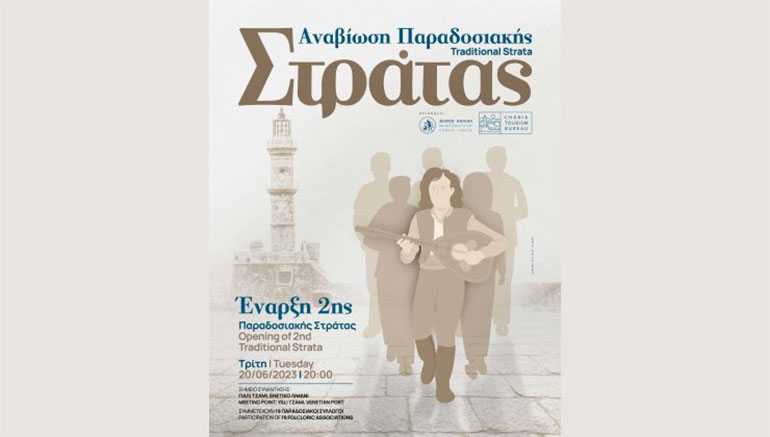 Η «Παραδοσιακή Στράτα» πλαισιώνεται και φέτος από ομάδες από παραδοσιακούς συλλόγους του τόπου, με τη συνοδεία μουσικών παραδοσιακών οργάνων και καλλιτεχνών, που θα περιδιαβαίνουν για ακόμα μια χρονιά το παραλιακό τμήμα του Ενετικού λιμανιού. Το δρώμενο θα ξεκινήσει από αύριο Τρίτη 20 Ιουνίου 2023 στις 20:00 και θα επαναλαμβάνεται για όλες τις Τρίτες του καλοκαιριού, αναβιώνοντας με μουσική και τραγούδι το παραδοσιακό έθιμο. Σύμφωνα με τον αντιδήμαρχο Τουρισμού, Νεκτάριο Ψαρουδάκη, η «Παραδοσιακή Στράτα» γίνεται θεσμός και «…σε μια πόλη όπως τα Χανιά που δεν κοιμάται ποτέ, συνεχίζουμε με την ίδια όρεξη και πάθος με σκοπό να μεταδώσουμε την παράδοση και τον πολιτισμό μας, στους πολίτες και στους επισκέπτες μας… κάνουμε μια δυναμική αρχή για δεύτερη συνεχή χρονιά, με 19 διαφορετικούς συλλόγους, περισσότερα από 1.400 μέλη τους και 80 επαγγελματίες μουσικούς, που ασχολούνται με την Κρήτη, και με δρώμενα που θα αναδείξουν την παράδοση του τόπου μας».