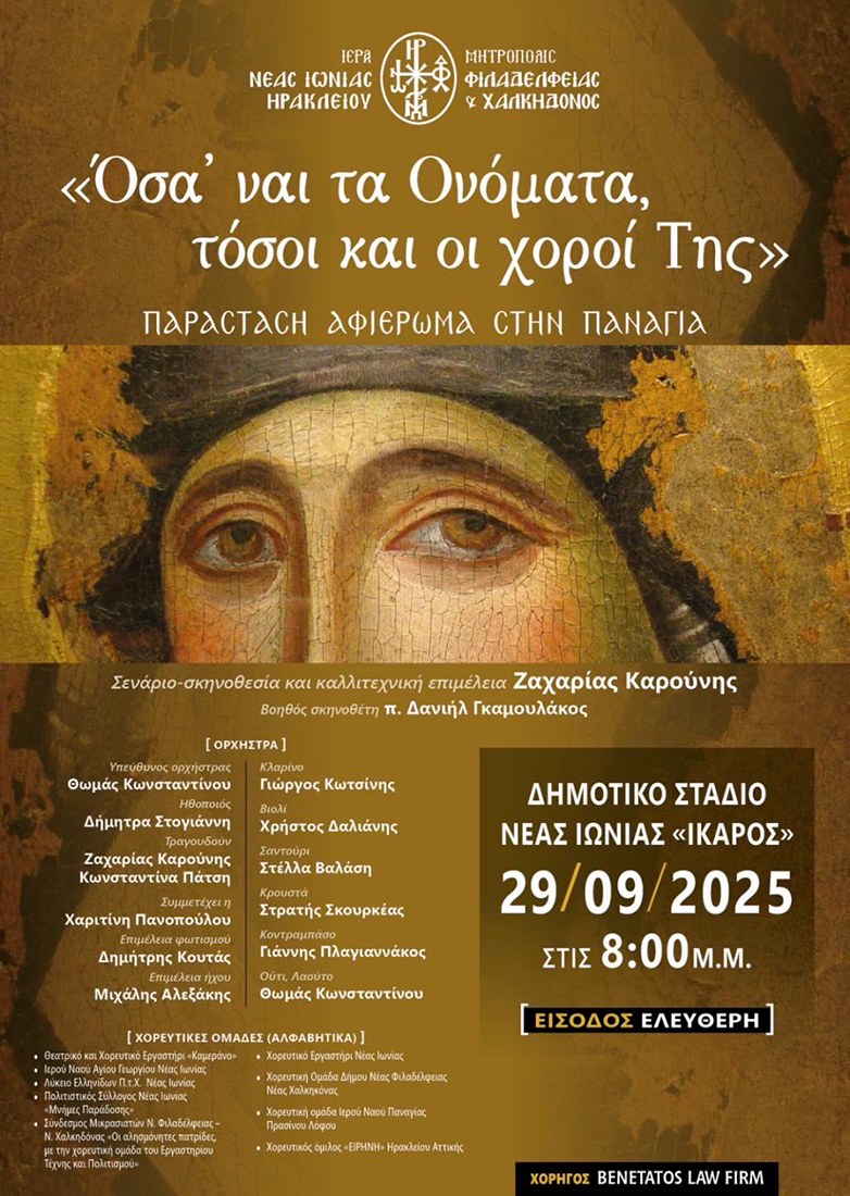 Η εκδήλωση θα πραγματοποιηθεί τη Δευτέρα 29 Σεπτεμβρίου 2025 και ώρα 8:00μ.μ. στο Δημοτικό Στάδιο της Ν. Ιωνίας (οδ. Ομορφοκκλησιάς & Ολυμπίας).