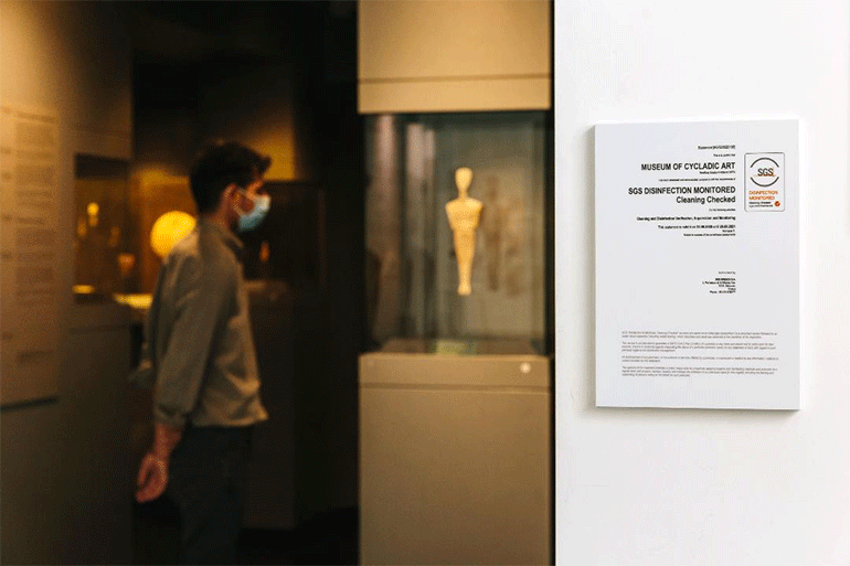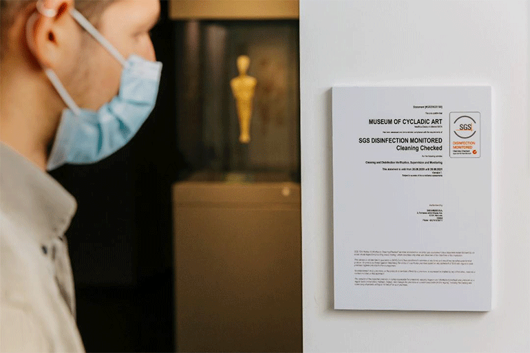 Το Μουσείο Κυκλαδικής Τέχνης συνεργάστηκε με την εταιρεία επιθεωρήσεων, πιστοποιήσεων και ελέγχων SGS για την εφαρμογή προγράμματος που επικυρώνει την αποτελεσματικότητα και τη σωστή εφαρμογή όλων των διαδικασιών καθαρισμού και απολύμανσης (περιλαμβανομένου του ιού SARS-CoV-2 / Covid-19). Η υπηρεσία SGS Disinfection Monitored έχει εφαρμογή ιδιαίτερα σε οργανισμούς με δραστηριότητα που σχετίζεται με τη συνάθροιση μεγάλου αριθμού ανθρώπων.