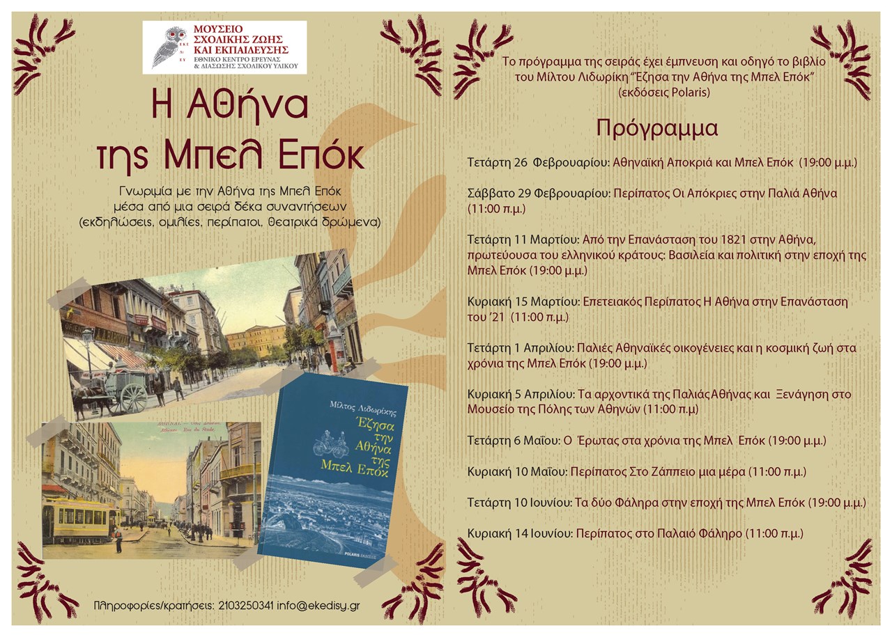 Η σειρά αυτή έχει έμπνευση και οδηγό το βιβλίο του Μίλτου Λιδωρίκη «Έζησα την Αθήνα της Μπελ Επόκ» (Εκδ. Polaris) και ξεκινώντας τον Φεβρουάριο με τις Απόκριες θα τελειώσει τον Ιούνιο.