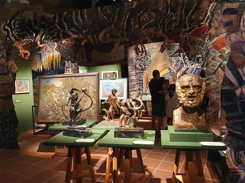 Από τα πιο εντυπωσιακά γλυπτά της έκθεσης είναι το κεφάλι της Μέδουσας που φιλοτέχνησε ο Γκίκας το 1948. Για τη δημιουργία του χρησιμοποίησε τσιμέντο και πολλά ετερόκλητα υλικά που συνέλεξε από την Πάρο όπου διέμενε εκείνο το διάστημα. Τα γλυπτά του Οδυσσέα και της Ναυσικάς από το Ομηρικό Έπος που τον ενέπνευσε δεσπόζουν στην είσοδο της έκθεσης, όπως επίσης και τα σχέδια από την ζωή και τους άθλους του μεγάλου μυθικού ήρωα του Ηρακλή.