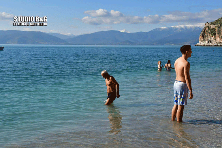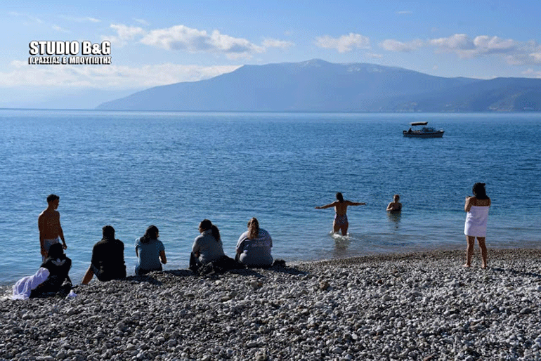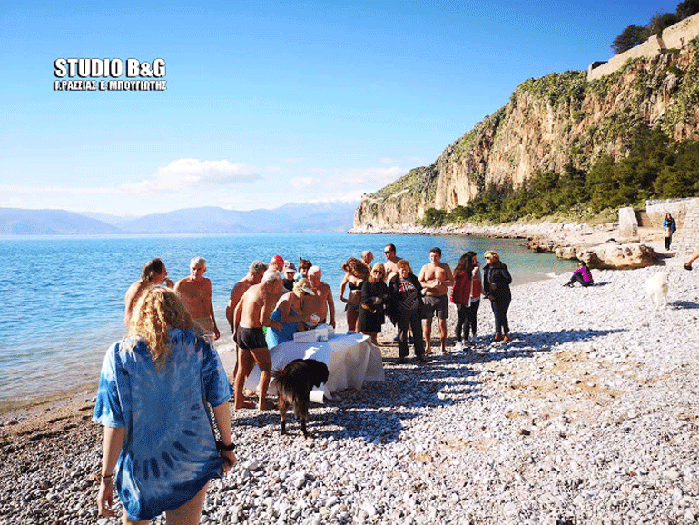 Οι χειμερινοί κολυμβητές βούτηξαν στα καταγάλανα αλλά κρύα νερά του Αργολικού κόλπου, με σύμμαχο την ηλιοφάνεια που επικρατούσε.