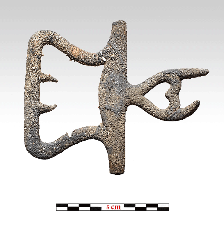 Στον χώρο της τομής εντοπίσθηκαν, όπως και κατά την προηγούμενη ανασκαφική περίοδο το 2019, ένας σημαντικός αριθμός ξύλινων και μεταλλικών αντικειμένων που σχετίζονται κατά κύριο λόγο με τον εξαρτισμό του ενός εκ των δύο ιστών του πλοίου. Ξύλινοι διαμπερείς κύλινδροι που χρησίμευαν για την κύλιση της κεραίας του κεντρικού ιστίου στον ιστό, ξύλινοι κύλινδροι που απέτρεπαν την περιτύλιξη των σχοινιών, ξύλινες δέστρες για την πρόσδεση των σχοινιών, τροχαλίες διαφόρων μεγεθών, μονές ή διπλές, ορισμένες από τις οποίες σώζουν ακόμα τμήματα των σχοινιών πρόσδεσής τους (από το χώρο του ναυαγίου έχουν ανελκυσθεί μέχρι σήμερα 35 τροχαλίες ακέραιες ή τμήματά τους, από συνολικά περίπου τις 120 που απαιτούνται για τον εξαρτισμό ενός πλοίου των διαστάσεων του Μέντορα).