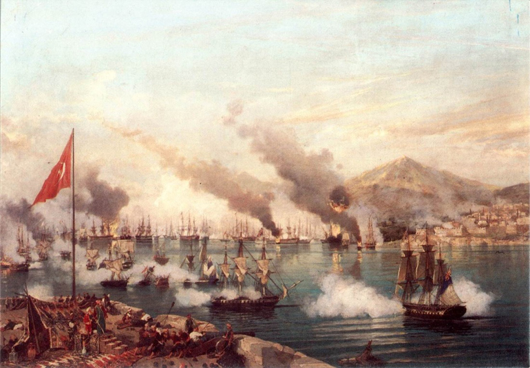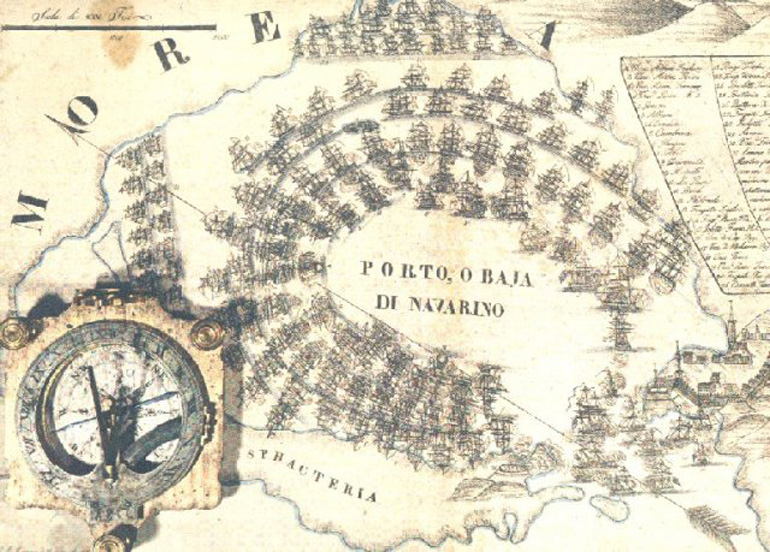 (Η διάταξη των δύο στόλων μέσα στον κόλπο του Ναυαρίνου)
