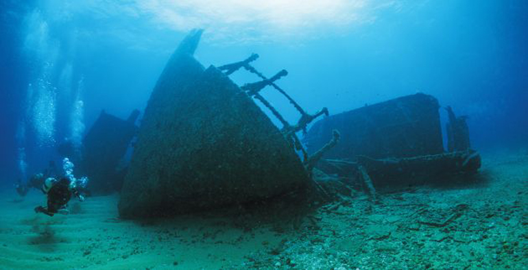 (Τα συντρίμμια των πλοίων του τουρκικού στόλου όπως φαίνονται στον βυθό του λιμένα της Πύλου)