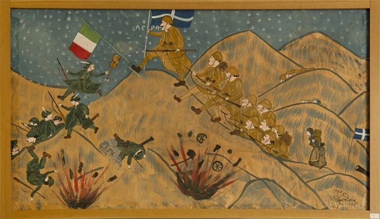 1950 Διαφημιστική Ρεκλάμα Ελληνοιταλικός Πόλεμος. Υπογεγραμμένο από τον Ευγένιο Σπαθάρη