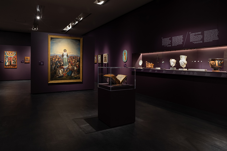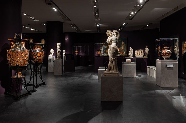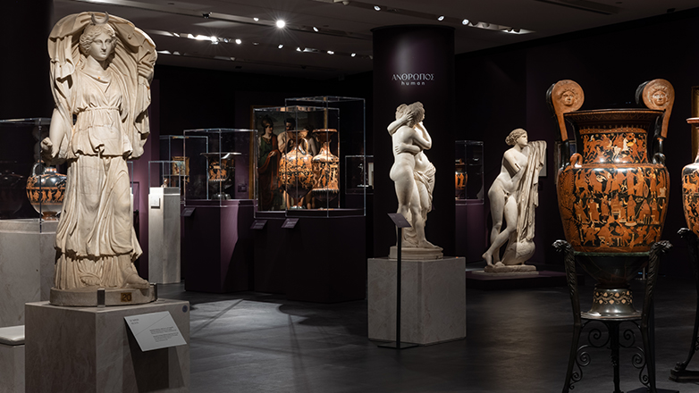 Εμβληματικά είναι και τα αντικείμενα από τα ελληνικά μουσεία και τις ιδιωτικές συλλογές που κοσμούν την έκθεση, η οποία θα διαρκέσει έως τις 14 Απριλίου 2024. Μεταξύ αυτών, συγκαταλέγονται περίφημα έργα των Γιάννη Τσαρούχη, Νικολάου Γύζη, Χρήστου Μποκόρου, Ιωάννη Κόσσου και Θεόδωρου Βρυζάκη, καθώς και μοναδικές αρχαιότητες, όπως η Σανδαλίζουσα, 420 – 410 π.Χ., από το Μουσείο Ακρόπολης, το κεφάλι με κράνος από άγαλμα της θεάς Ρώμης (προσωποποίηση της Ρωμαϊκής Αυτοκρατορίας), 130-140 μ.Χ. από το Αρχαιολογικό Μουσείο Αρχαίας Σικυώνας ή η Εικόνα αλληγορία της Θείας Μετάληψης του 18ου αιώνα, έργο του Κωνσταντίνου Κονταρίνη από το Βυζαντινό και Χριστιανικό Μουσείο.