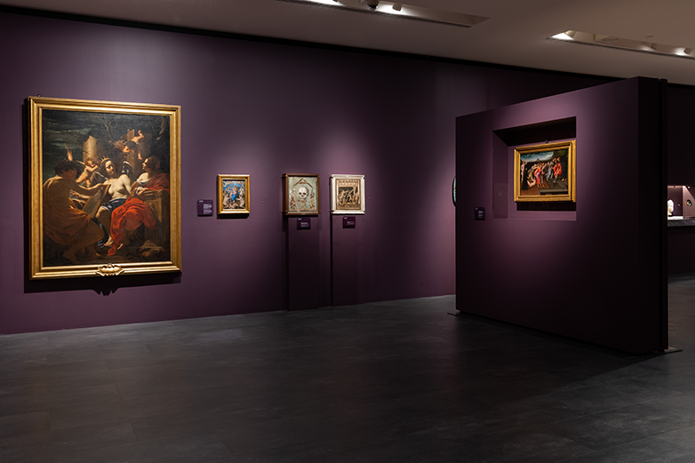 Η έκθεση χωρίζεται σε έξι ενότητες: Χρόνος, Φύση, Θεότητες, Άνθρωπος & Ανθρώπινη Φύση, Θεσμοί, «Αλληγορίες» και έναν Επίλογο. «Κάθε μία από αυτές έχει μία ή περισσότερες υποενότητες, αναλόγως του αριθμού των έργων που κατορθώσαμε να συγκεντρώσουμε για το τετράμηνο διάστημα διάρκειάς της στο Μουσείο Ακρόπολης», σημείωσε ο καθηγητής, που εντυπωσίασε κατά την παρουσίαση των έργων, όλα μοναδικά, τα οποία προέρχονται από διάφορα μουσεία του κόσμου. Όπως για παράδειγμα το Μουσείο του Πράδο, με το έργο «Ο Κρόνος καταβροχθίζει τον γιο του» του Ρούμπενς που ‘καλωσορίζει’ τον επισκέπτη στην περιοδική έκθεση με μια πολύ δυνατή σκηνή η οποία μπορεί να αντιπροσωπεύει πολλά, από «την ενδοοικογενειακή βία ή ένα παρελθόν που τρώει το παρόν και το μέλλον», το Εθνικό Αρχαιολογικό Μουσείο της Νάπολης με το έργο «Φλώρα», τμήμα τοιχογραφίας με προσωποποίηση της Άνοιξης (α’ μισό 1ου αι. μ.Χ.), την Γκαλερί Μποργκέζε με τον πίνακα «Έρως και Ψυχή» του Jacopo Zucchi, 1589, τα Μουσεία Βατικανού με την «Τύχη της Αντιοχείας» του 300 π.Χ., το Μουσείο Ιστορίας της Τέχνης της Βιέννης με τον Αττικό μελανόμορφο και ερυθρόμορφο αμφορέα με απεικόνιση Δίκης με σφυρί, προσωποποίηση της δικαιοσύνης, που ετοιμάζεται να χτυπήσει την Αδικία, περ. 520 π.Χ., το Εθνικό Μουσείο της Jatta με τον Κρατήρα του Τάλω, προσωποποίηση της Κρήτης, 420 – 400 πΧ., την Πινακοθήκη της Ακαδημίας της Βενετίας με το έργο «Ο Ηρακλής στο σταυροδρόμι», του Giovanni De Min, 1812, και πολλά ακόμα.