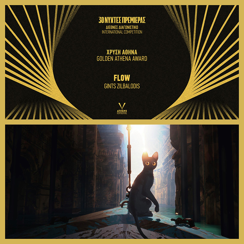 Η ταινία κινουμένων σχεδίων «Flow» του Γκιντς Ζιλμπαλόντις κέρδισε τη Χρυσή Αθηνά Καλύτερης Ταινίας και το βραβείο κοινού στο 30ο Διεθνές Φεστιβάλ Κινηματογράφου της Αθήνας «Νύχτες Πρεμιέρας», που ολοκληρώθηκε χθες (14/10) στο Θέατρο Παλλάς, με την απονομή των βραβείων και την προβολή της ταινίας «Το Διπλανό Δωμάτιο» του Πέδρο Αλμοδόβαρ, η οποία κέρδισε το Χρυσό Λιοντάρι στο φετινό Φεστιβάλ Βενετίας.