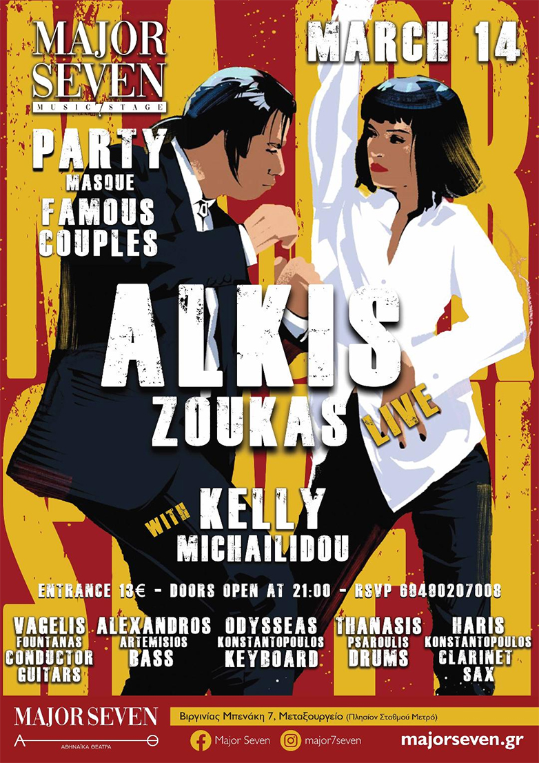 Την Πέμπτη 14 Μαρτίου, ο τραγουδοποιός Άλκης Ζούκας και το Major Seven σας προσκαλούν σε ένα εκρηκτικό live που υπόσχεται να απογειώσει τη διάθεσή σας.