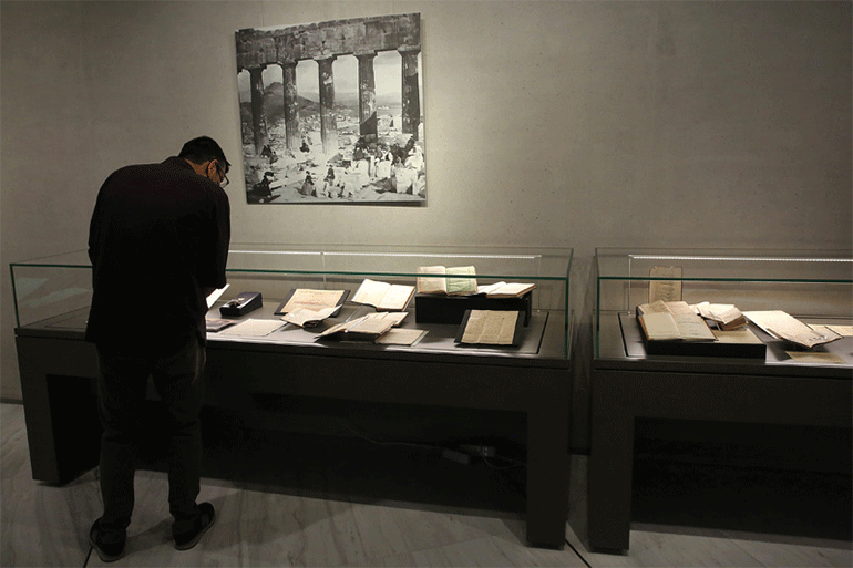 Το άγαλμα «Η Ελληνίδα σκλάβα» του Αμερικανού γλύπτη Χίραμ Πάουερς ξεχωρίζει στην έκθεση της Γενναδείου Βιβλιοθήκης, με θέμα τον Αμερικανικό Φιλελληνισμό και την κατανόηση των διαπολιτισμικών σχέσεων Ελλάδας και Αμερικής τον 19ο αιώνα, αιώνα επαναστάσεων.