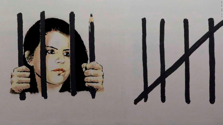 Σε κάποιο σημείο της τοιχογραφίας στο Μανχάταν, αντί τις συνήθεις τέσσερις κάθετες γραμμές και μία πέμπτη, διαγώνια, με τις οποίες μετράται ο χρόνος εγκλεισμού, ο Banksy πίσω από τις τέσσερις κάθετες έχει ζωγραφίσει το πρόσωπο της Ζέχρα σαν πίσω από κάγκελα φυλακής να κοιτά έξω, με τα χέρια της να κρατούν την πρώτη γραμμή που είναι κάγκελο και την τέταρτη που είναι κραγιόν ζωγράφου. Ποστάροντας στον λογαριασμό του στο Instagram φωτογραφίες αυτής της τοιχογραφίας και του πίνακα της Ζέχρα Ντογάν, ο Banksy ενθαρρύνει εμάς ποστάρουμε στους δικούς μας λογαριασμούς το έργο της, κάνοντας tag τον Τούρκο Πρόεδρο Ρετζέπ Ταγίπ Ερντογάν, ο οποίος είναι ιδιαίτερα ενεργός σε αυτό το μέσο κοινωνικής δικτύωσης.
