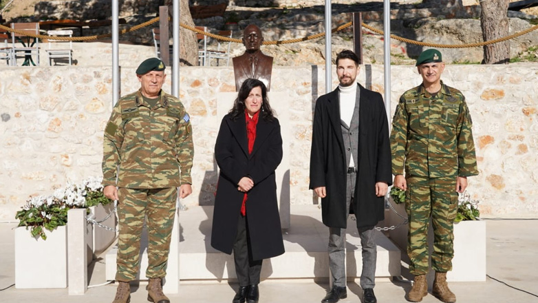 Εν συνεχεία, ευχαρίστησε θερμά τον διεθνώς καταξιωμένο και βραβευμένο γλύπτη, Νίκο Φλώρο, για την προσφορά του στις ένοπλες Δυνάμεις της Ελλάδος.