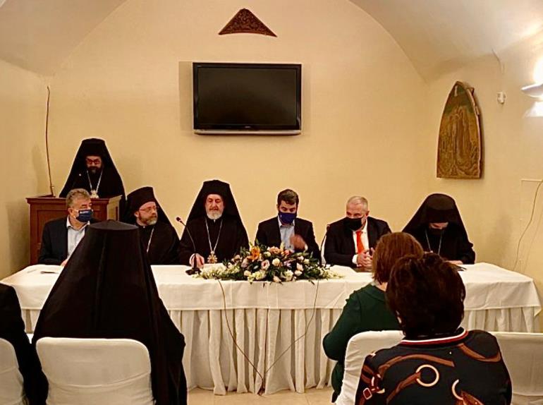 Στην εκδήλωση παρέστη και απηύθυνε χαιρετισμό εκ μέρους του Πρωθυπουργού Κυριάκου Μητσοτάκη, η Υπουργός Πολιτισμού, Λίνα Μενδώνη. Ακολούθησαν ομιλία του Μητροπολίτου Κυδωνίας κ. Δαμασκηνού, με θέμα τα τριάντα χρόνια της διακονίας του Πατριάρχη και της καθηγήτριας του Πολυτεχνείου Κρήτης, Αμαλίας Κωτσάκη, με θέμα τη μετατροπή της παλαιάς ιερατικης σχολής της Μονής σε πατριαρχικό ίδρυμα.