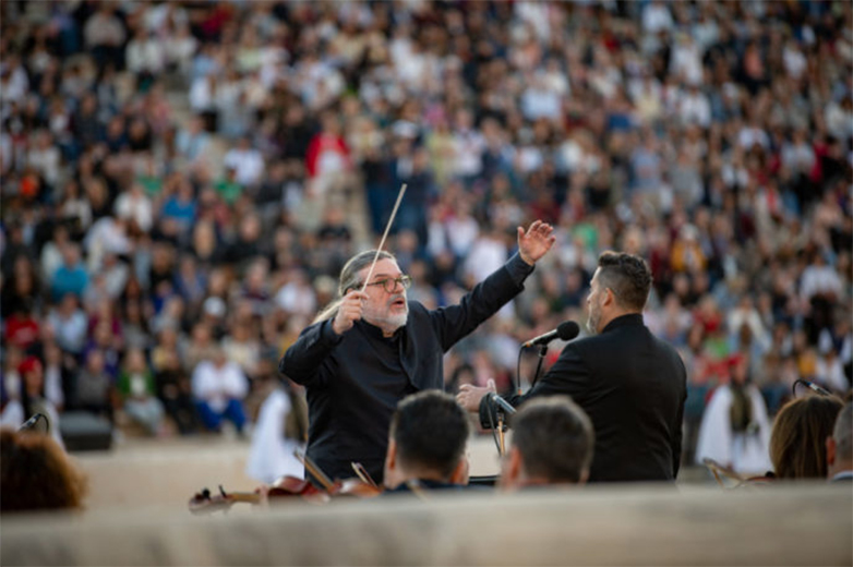 Εκεί θα εκτελεσθούν πάλι οι πρωτότυπες μουσικές συνθέσεις του Δημήτρη Παπαδημητρίου που γράφηκαν και εκτελέστηκαν στην Ολυμπία και το Καλλιμάρμαρο, αλλά και αυτές που πρωτοακούστηκαν στην ιερή Δήλο προς τιμήν του Απόλλωνος και της Αρτέμιδας.