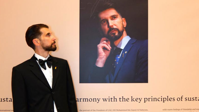 “Για πρώτη φορά η Πρεσβεία των Η.Α.Ε. ανοίγει τις πόρτες της στους υψηλούς της προσκεκλημένους οι οποίοι έχουν την ευκαιρία να δουν και να θαυμάσουν από κοντά μερικά από τα σημαντικότερα έργα του Έλληνα γλύπτη που βασίζονται σε μια ειδική τεχνική μετατροπής αλουμινίου σε πρωτότυπα έργα τέχνης, μοναδικά γλυπτά κοστούμια και πορτραίτα διάσημων προσωπικοτήτων.