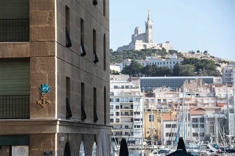 Η καλλιτεχνική κατάληψη της Μασσαλίας από τον «Εισβολέα» -τον καλλιτέχνη δρόμου γνωστό ως Invader- έχει ολοκληρωθεί. Φημισμένος για τα ψηφιδωτά του, τα οποία έχουν ως πηγή έμπνευσης τα βιντεοπαιχνίδια της δεκαετίας του 1980, ο Invader εγκατέστησε σε όλη την πόλη πάνω από 80 έργα του, στο πλαίσιο της φιλόδοξης νέας έκθεσης «Invader Was Here».