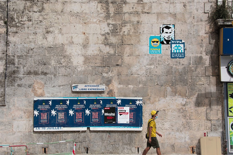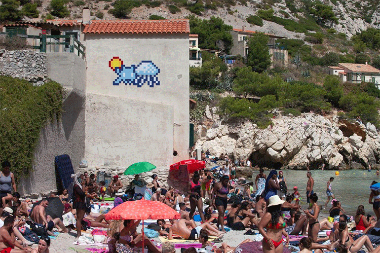 Πέρασε όλο το καλοκαίρι εγκαθιστώντας στη Μασσαλία έργα τέχνης διαφόρων μεγεθών -το μικρότερο ήταν μόλις 20 εκατοστά, το μεγαλύτερο, τέσσερα μέτρα, αποτελούμενο από 80 κιλά κεραμικά πλακάκια- ως μέρος πρότζεκτ για το κέντρο τέχνης MAMO. Δεν ήταν μικρό επίτευγμα για τον καλλιτέχνη με περισσότερους από 700.000 followers στο Instagram, οι οποίοι διαγκωνίζονται μεταξύ τους στο να μοιράζονται φωτογραφίες των έργων του με το που εμφανίζονται αυτά στην εφαρμογή του «Flashinvaders».