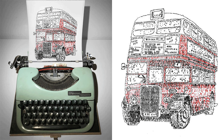 Ο Βρετανός καλλιτέχνης αγόρασε την πρώτη γραφομηχανή του από ένα ζευγάρι ηλικιωμένων που πωλούσαν τα παλιά τους πράγματα. Απέκτησε, με τα χρόνια, μια συλλογή από 30 διαφορετικής μηχανές που χρησιμοποιεί για τα έργα του ζωγραφικής. «Η πρώτη μου αγορά ήταν μια Oliver Courier του 1956… Είναι, εδώ και έξι χρόνια, στη συλλογή μου των 30 γραφομηχανών και πάνω από τα μισά έργα μου τα έχω κάνει με αυτήν» λέει.