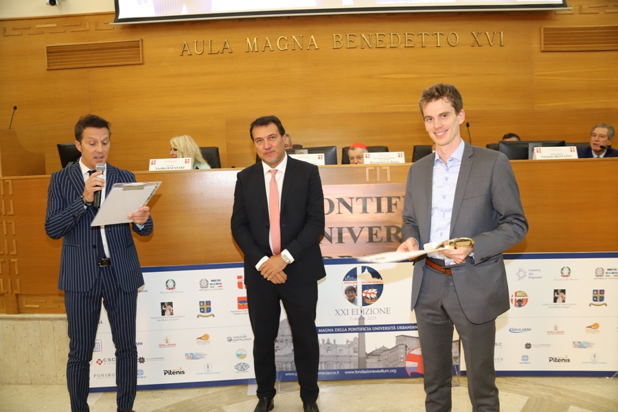 Η Αυτού Εξοχότης Πρέσβυς της Ελλάδας στο Βατικανό Κάτια Γεωργίου και ο Δρ. Επικοινωνίας Andrea Cicini βράβευσαν τον Ανδρέα Αλικανιώτη (20 ετών) και τον Άγγελο Τσιαμούρα (19 ετών) με το βραβείο Εθελοντισμού και Κοινωνικής Αλληλεγγύης σε μια φορτισμένη ατμόσφαιρα με το κοινό να χειροκροτεί όρθιο τους δύο ήρωες των Τεμπών. Οι δύο φοιτητές που ενεπλάκησαν στο σιδηροδρομικό δυστύχημα της 28ης Φεβρουαρίου 2023 στα Τέμπη με 57 νεκρούς, με θάρρος και εξαιρετική ανιδιοτέλεια διακινδυνεύοντας την ζωή τους, έσωσαν 26 ανθρώπους.