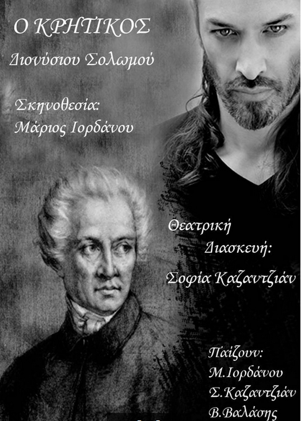 Ο Μάριος Ιορδάνου δημιουργεί μία παράσταση φόρο τιμής στο Διονύσιο Σολωμό, η οποία θα κινείται στο ίδιο ύφος με το εξαιρετικά επιτυχημένο σε Βερολίνο, Αθήνα, Ζυρίχη και Παρίσι, «Δε φοβάμαι. Δεν ελπίζω. Είμαι…» για τον Νίκο Καζαντζάκη, συνδυάζοντας θέατρο, ποίηση, φιλοσοφία, χορό, τραγούδι και εικαστικές παρεμβάσεις. Το ποίημα «Ο Κρητικός» συναντά επί σκηνής και άλλα αριστουργήματα της ελληνικής και παγκόσμιας λογοτεχνίας, όπως οι Ελεύθεροι Πολιορκημένοι, ο Ερωτόκριτος, η Ερωφίλη, η Οδύσσεια, ο Φάουστ, ο Ματωμένος Γάμος και η Θεία Κωμωδία.