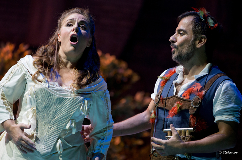 Η παραγωγή, σε σκηνοθεσία του διακεκριμένου γάλλου σκηνοθέτη Αρνώ Μπερνάρ, πρωτοπαρουσιάστηκε στην Εθνική Λυρική Σκηνή, την καλλιτεχνική περίοδο 2010-11 σημειώνοντας μεγάλη επιτυχία. Πρόκειται για μια παράσταση υψηλής αισθητικής που κατάφερε να κερδίσει κοινό και κριτικούς. Η σκηνοθεσία αναδεικνύει τα επίπεδα του κειμένου, ενώ προσφέρει ένα παραμυθένιο θέαμα χάρη και στα εντυπωσιακά σκηνικά και κοστούμια του Μπρούνο Σβένγκλ.