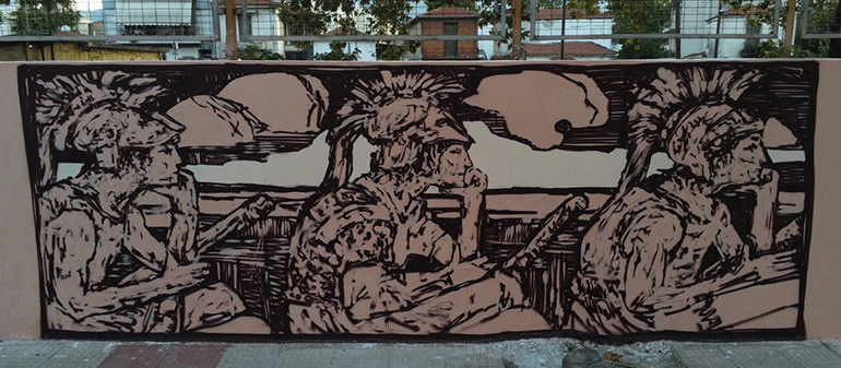 Όπως υπογράμμισε ο κ. Ιωσηφίδης, «εφέτος, με τη στήριξη της διεύθυνσης του εμπορικού κέντρου OldCity, ξεκινήσαμε την παρέμβαση στην άλλη άκρη της εν λόγω επιφάνειας. Επιλέχτηκε να υλοποιήσουμε τον μύθο της Αργούς και της Αργοναυτικής εκστρατείας. Η υλοποίηση του εικαστικού έργου είχε τις δυσκολίες της μιας και έπρεπε να αποδοθεί σε επιφάνεια με χαμηλό ύψος».