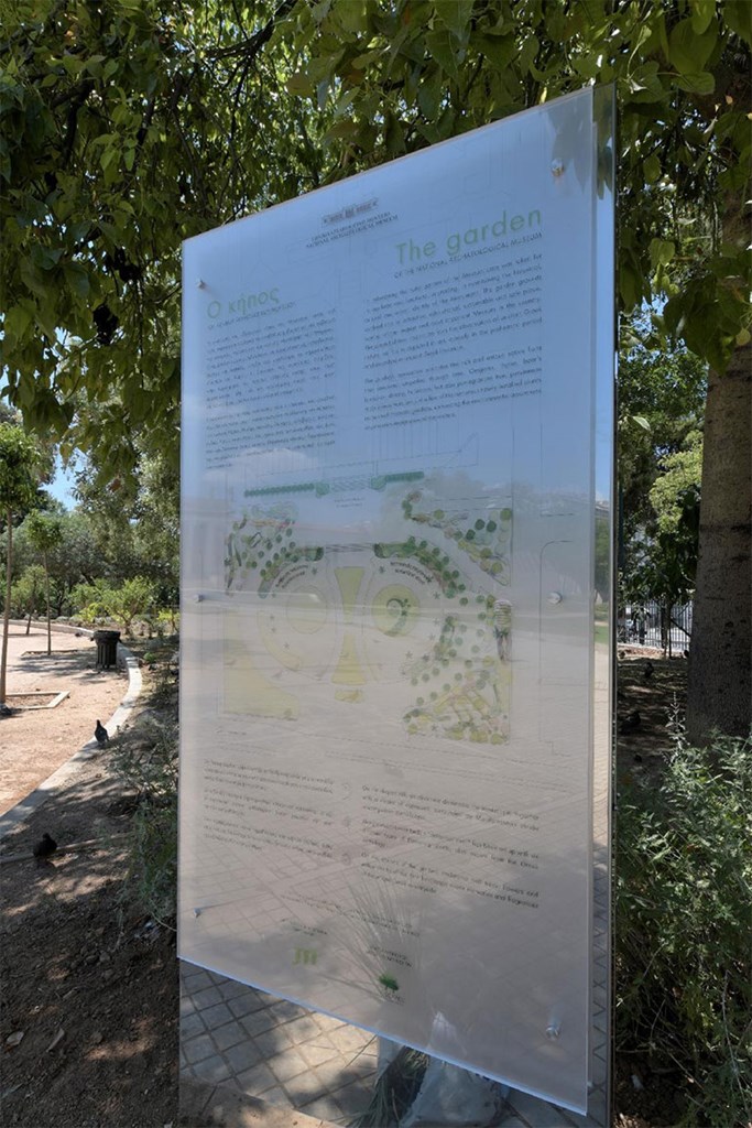 »Σε άλλες περιοχές αναπτύχθηκαν μικρότεροι κήποι, όπως αυτός στον προαύλιο χώρο, στο προκήπιο, του Εθνικού Αρχαιολογικού Μουσείου. Στον τρόπο που δομήθηκε ο κήπος, έχει υιοθετηθεί το μεγάλο δίδαγμα της αρχαιότητας. Πώς η φύση μπορεί να συνδυαστεί με τα ανθρώπινα δημιουργήματα. Είναι ευτύχημα, είναι αγαθή τύχη, που τα ανθρώπινα δημιουργήματα πολλές φορές έχουν τη μορφή που έχει το κτήριο του Εθνικού Αρχαιολογικού Μουσείου. Και έτσι είναι πολύ πιο εύκολο να συνδυαστούν από τους ειδικούς, με τα διδάγματα της φύσης και της κλασικής αρχαιότητας, με έναν νέο τρόπο ζωής».
